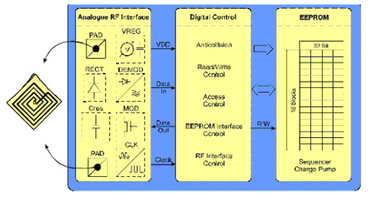 d.邏輯控制電路:譯碼閱讀器所送過(guò)來(lái)的信號(hào), 并依其要求回送數(shù)據(jù)給閱讀器。