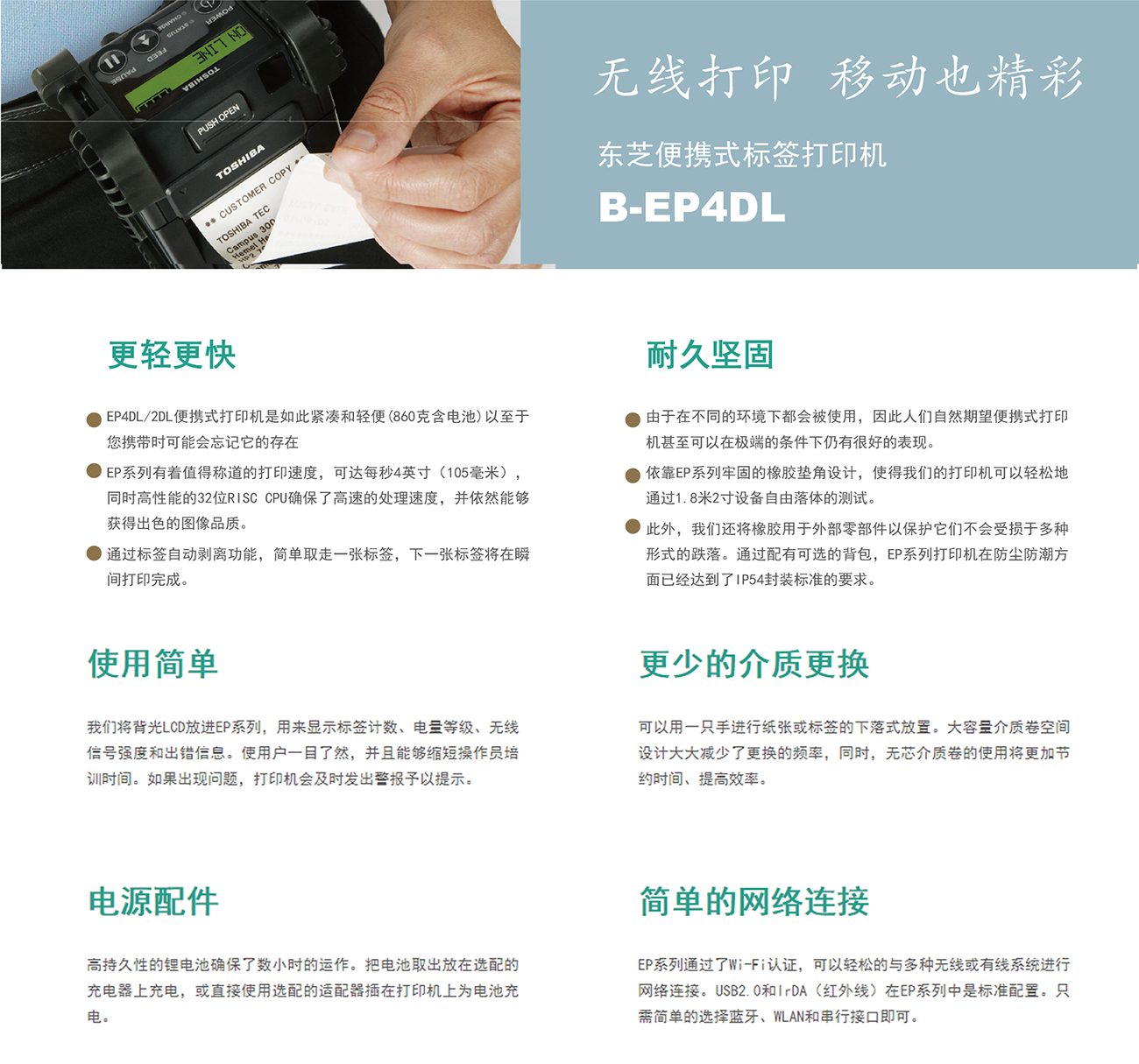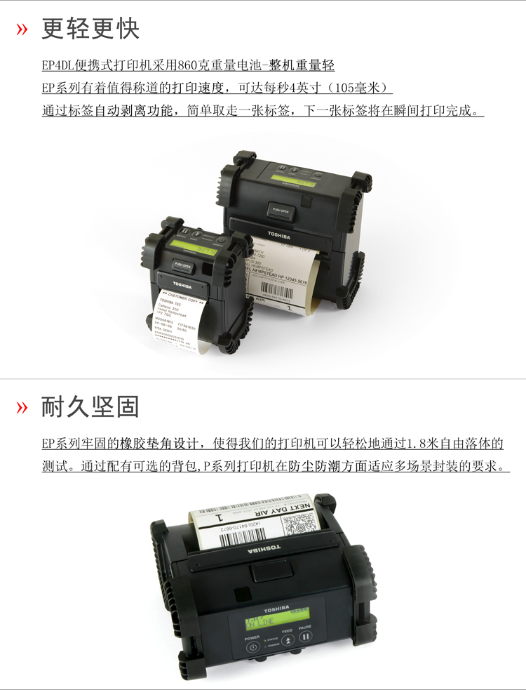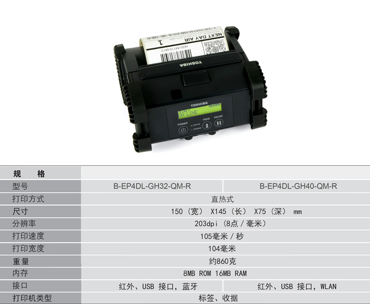 B-EP4DL便攜式標簽打印機東芝EP4DL-GH32/GH40快遞物流零售便攜藍牙WIFI打印機
