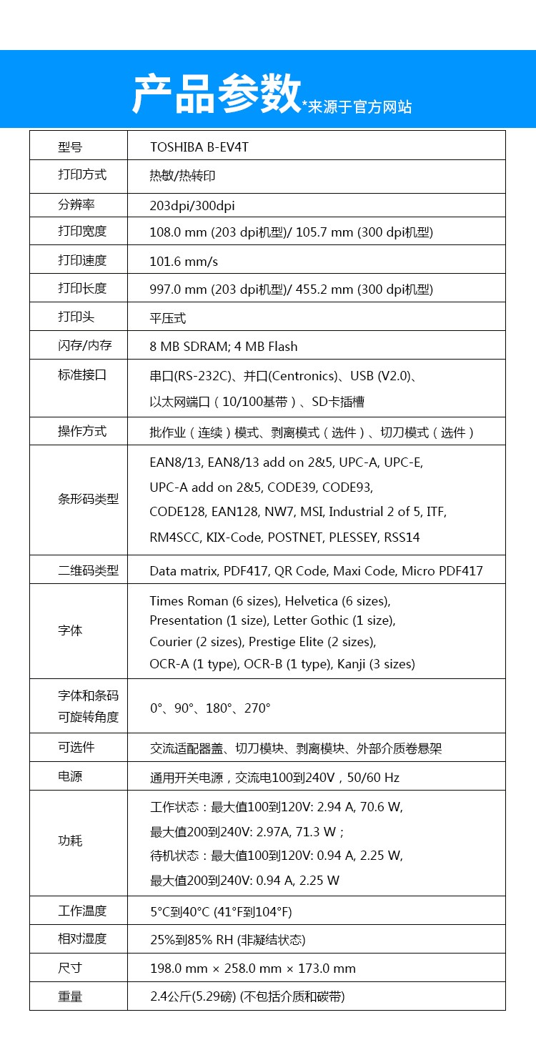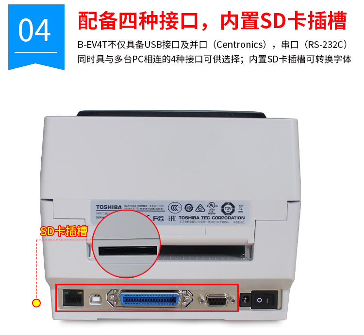 東芝B-EV4能夠直接、快速從您的PC桌面按需打印標(biāo)簽和票務(wù)信息,緊湊型專業(yè)標(biāo)簽打印功能,讓您在一個按鈕的觸碰下,便能輕松地生產(chǎn)專業(yè)標(biāo)簽。203 或300 dpi 打印分辨率機型同時,具備SD卡插槽擴展的功能,分辨率203dpi或300dpi能滿足多樣化的打印需求。廣泛的應(yīng)用領(lǐng)域:制造業(yè) / 汽車業(yè) / 重工業(yè) / 鋼鐵業(yè) / 造紙業(yè) / 林業(yè) / 化工業(yè) / 制藥業(yè) / 紡織業(yè) / 零售業(yè) /