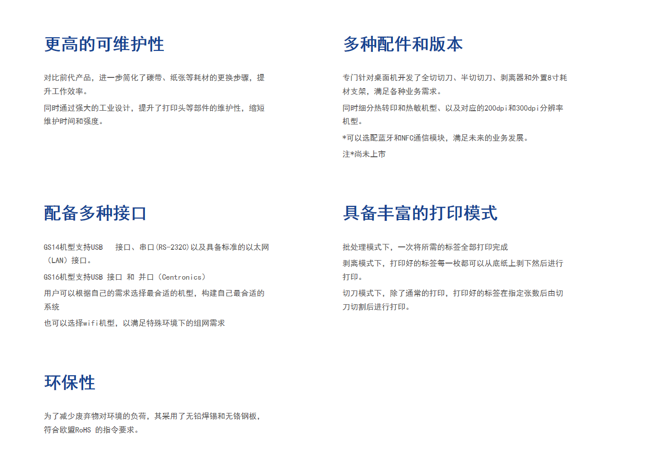 標準接口GS14及TS14機型(串口(RS-232C), LAN10/100 Base, USB2.0, USB Host) GS16及TS16機型(并口(Centronics), USB2.0, USB Host)