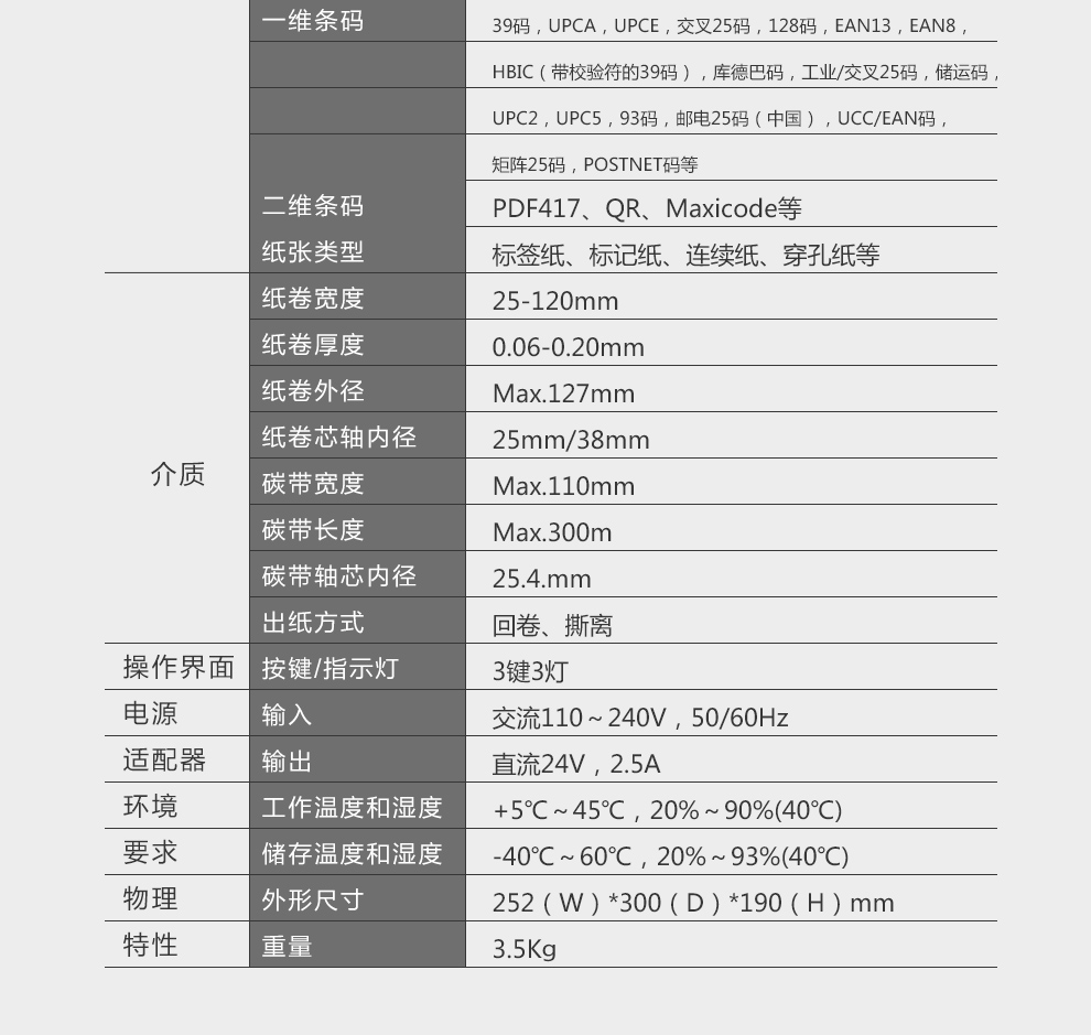 ?  打印速度: 76mm/s(300DPI)