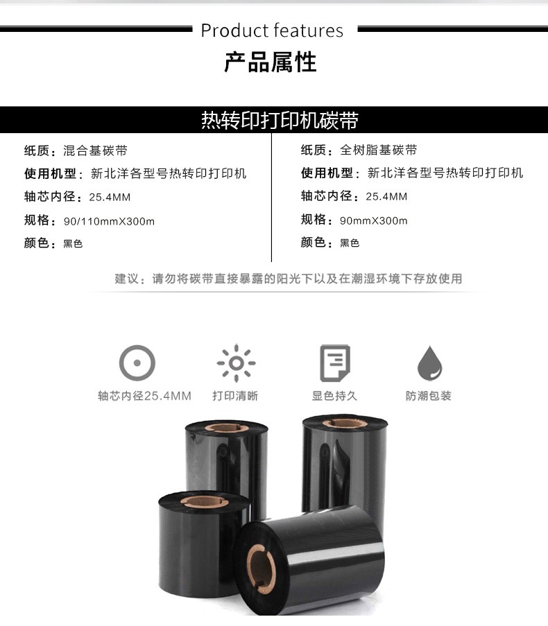 熱轉(zhuǎn)印碳帶色帶、條碼機標(biāo)簽機碳帶、混合樹脂基